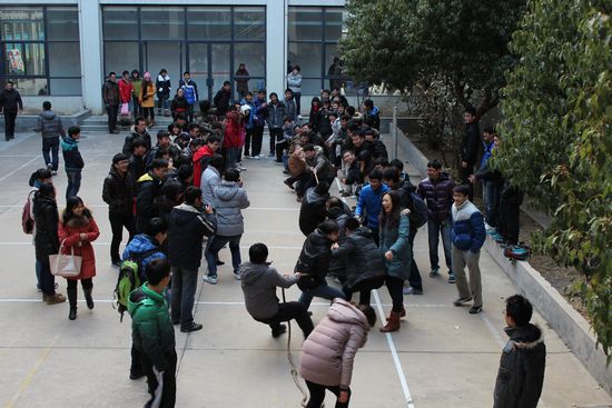 冬天的寒意挡不住教职工们参与比赛的热情,在一片笑闹欢呼声中,437ccm·必赢国际教职工趣味运动会在土建大厅愉快地进行着。我院教职工趣味运动会形式新颖,项目多样,充满趣味性,此次趣味运动会由“趣味保龄球”“沙包掷准”“贴鼻子”“拔河”等17个项目组成,教职工们根据自己的兴趣喜好参与其中。比赛开始后,整个运动场洋溢着欢畅的氛围,呐喊声,加油声,欢笑声交织在一起,此消彼长。在集体跳绳比赛中,教职工们显得非常默契,一上一下,整齐划一,脸上挂满了灿烂的笑容,参加“穿针引线”的老师们聚精会神的纫着手中的针线,丝毫不受会场欢呼声的干扰,参加“趣味保龄球”的老师每每击中目标都会赢得现场同学们的阵阵喝彩,“贴鼻子”比赛的花样百出更是为大家带来无限欢乐,以工会小组为单位的拔河比赛着实将此次运动会推向高潮。在这轻松愉悦的氛围中,教职工们热情积极的参与,丢掉了工作上的疲惫,忘却了生活中的烦恼,与同事们一同竞技,与同学们一同欢笑。