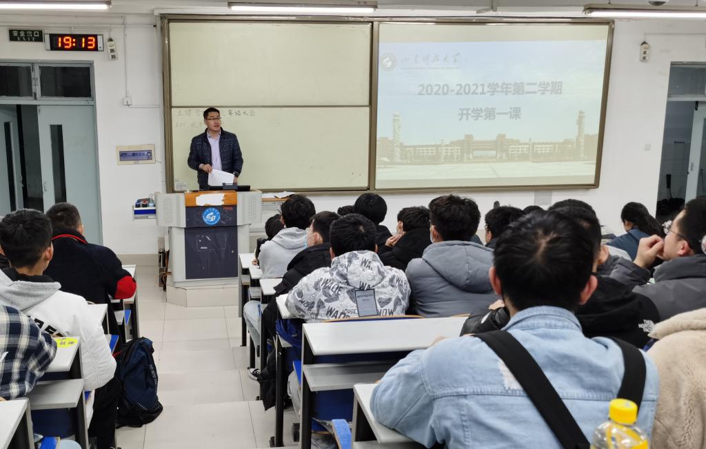 返校后,全体辅导员第一时间通过深入学生宿舍、召开主题班会等形式上好“开学第一课”。各辅导员结合具体案例,将疫情防控、党史学习、校庆宣传等内容融入到思政第一课中,引导学生从思想上和行动上做好开学后的各项工作。