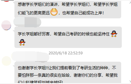 周晓璐,建筑学2015-2班,已被哈尔滨工业大学建筑学院录取,在交流会中介绍了哈工大老八校的实力水平,考研难度、考研参考书及考研计划安排。城乡规划2015级于海霞,成功考入大连理工大学建筑与艺术学院,她重点介绍了在备考过程中四门考试科目的时间安排与具体做法。敬玲玉、王映雪从快题专业课方面给大家分享了自己的经验。王储、贾儒轩分享了跨专业报考和调剂等相关注意事项。