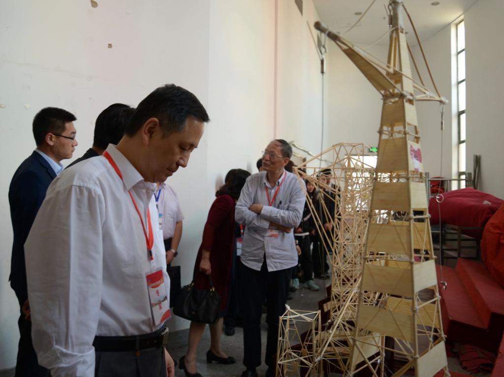 一个制作精良的模型绝不是一朝一夕就可以完成的,它是经过每位参赛队员不懈努力而获得的优秀成果。在比赛正式开始之前,全场共同观看了比赛花絮,了解了本次结构设计大赛背后的故事,体会到各参赛队员认真备赛的艰辛。紧接着,丛术平对比赛赛题进行了详细的介绍和讲解。随后,9支队伍依次进行模型介绍、答辩和加载三个环节,所有参赛队员意气风发,自信满满。各队队长结合PPT对参赛模型进行了介绍,在答辩环节,队员们的回答准确、详细,得到了评委的一致好评。之后,比赛进入了扣人心弦的加载环节,加载时分为一级荷载、二级荷载和三级荷载,每一支队伍都选择不同的加载重量。有些队伍在二级荷载时就遗憾失败,个别队伍则坚持到了三级荷载,成功完成了挑战。在加载环节中,观众们随着加载重量的增加而紧张,为模型的坍塌而感到惋惜,当模型成功挺过三级荷载时同学们由衷地发出赞叹。在九组模型比拼结束之后,本次大赛评委会主席任强对本次活动做了最后的点评。