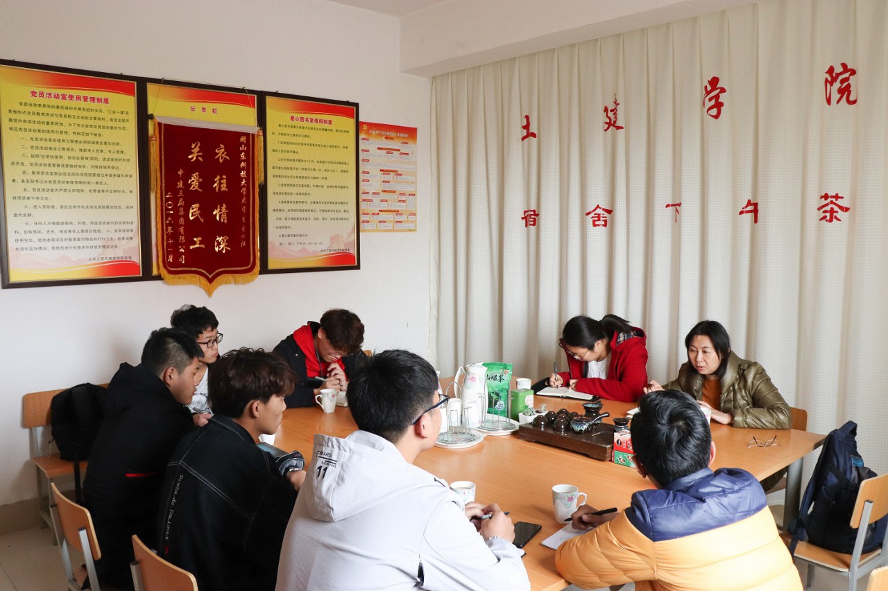 4月10日下午,437ccm·必赢国际建环系主任丛晓春教授做客“宿舍下午茶”,团委辅导员张翌陪同,参加本次茶会的还有GB2-116宿舍的6位同学。
