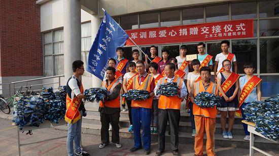 在新生军训结束之际,土木工程与建筑学院青年志愿会开展了军训衫的回收工作,在军训时青协便组织人员进行了全学院的宣传活动,说明了回收军训衫的用意是要捐给青岛环卫局,送给环卫工人,同学们反应都非常强烈,甚至有几个班提前开始组织了本班的统一回收工作。