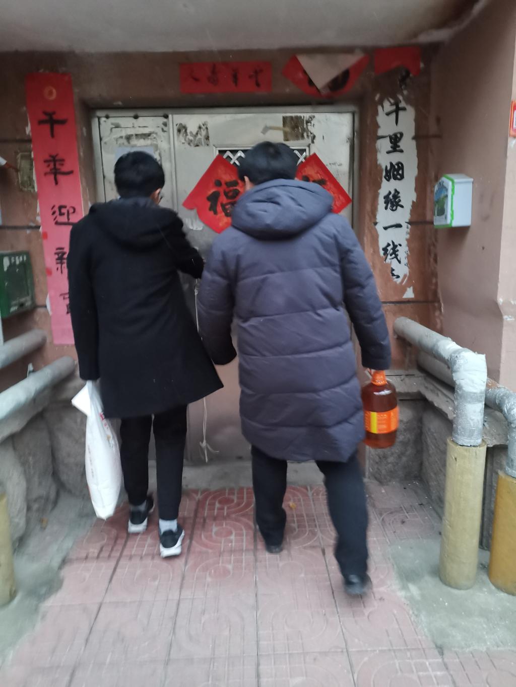 1月16日,辅导员张翌走访位于济南历城区的18级小冯同学及小张同学家中。小冯同学家庭经济困难,为城乡低保户,单亲家庭,母亲患风湿,长年无法正常工作。张翌向孩子母亲了解了家庭情况,与其讲解了国家、山东省和学校学院对家庭经济困难学生的帮扶政策,向其反映学生在校表现,并代表学院送上慰问品及慰问金。张翌与小张家长沟通了学生的在校表现,如实反映学生优缺点,与家长和学生讨论学生关于考研和就业的选择,了解学生备战考研进度和思路,根据学院往年数据和学生特点给予建议。