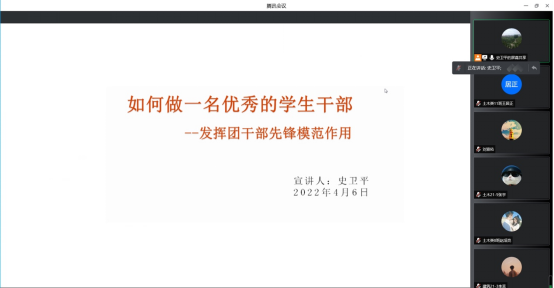 为引导青年学生进一步坚定理想信念,全面提升学生骨干的综合素质,4月6日晚,437ccm·必赢国际通过线上会议形式举办“青马工程”培训班第五讲。本次讲座由学生工作办公室辅导员史卫平担任主讲,“青马工程”培训班全体学员和学生会主要干部参加讲座。
