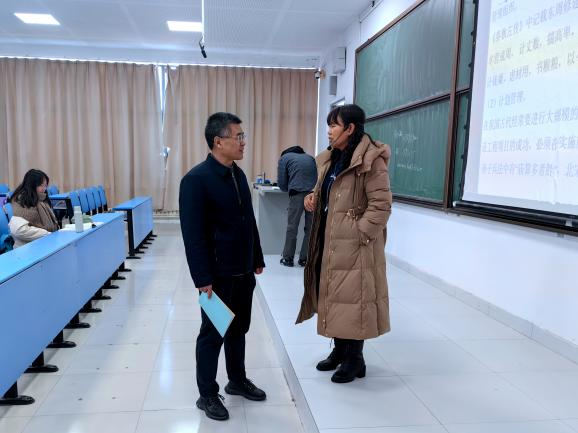 新学期上课第一天,学院党委书记宋西路带领领导班子成员深入课堂聆听了部分教师的新学期第一课。课堂上,任课教师备课充分、授课认真,学生精神饱满、出勤率高。课间,宋西路等人同任课教师和学生进行了交流,认真听取了任课教师和学生重返课堂的感受,深入了解了任课教师的教学准备、课堂管理等情况。