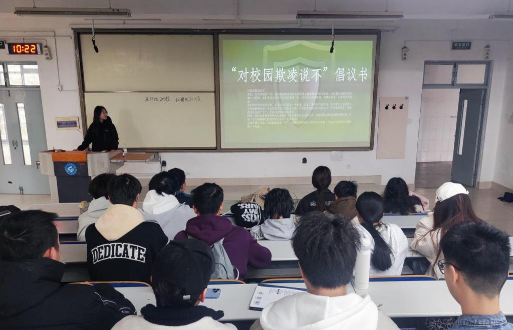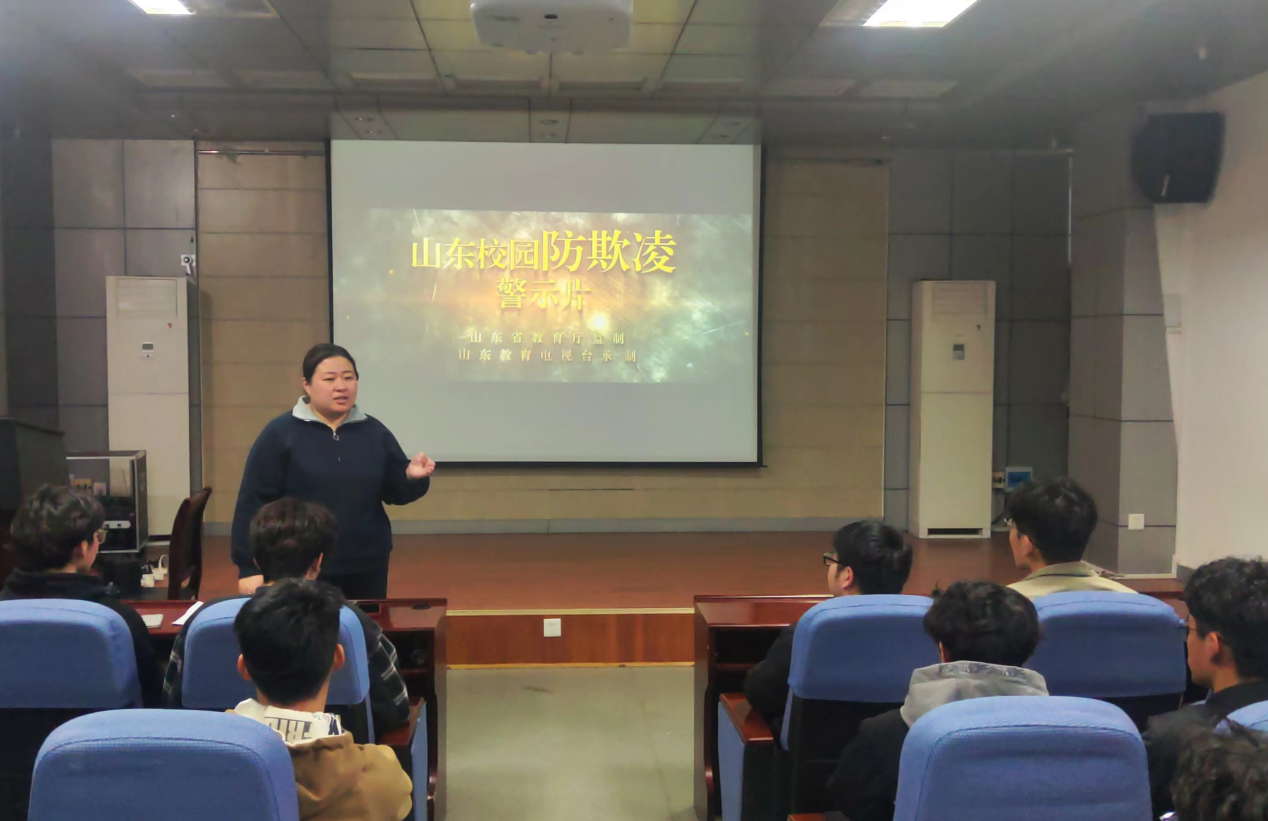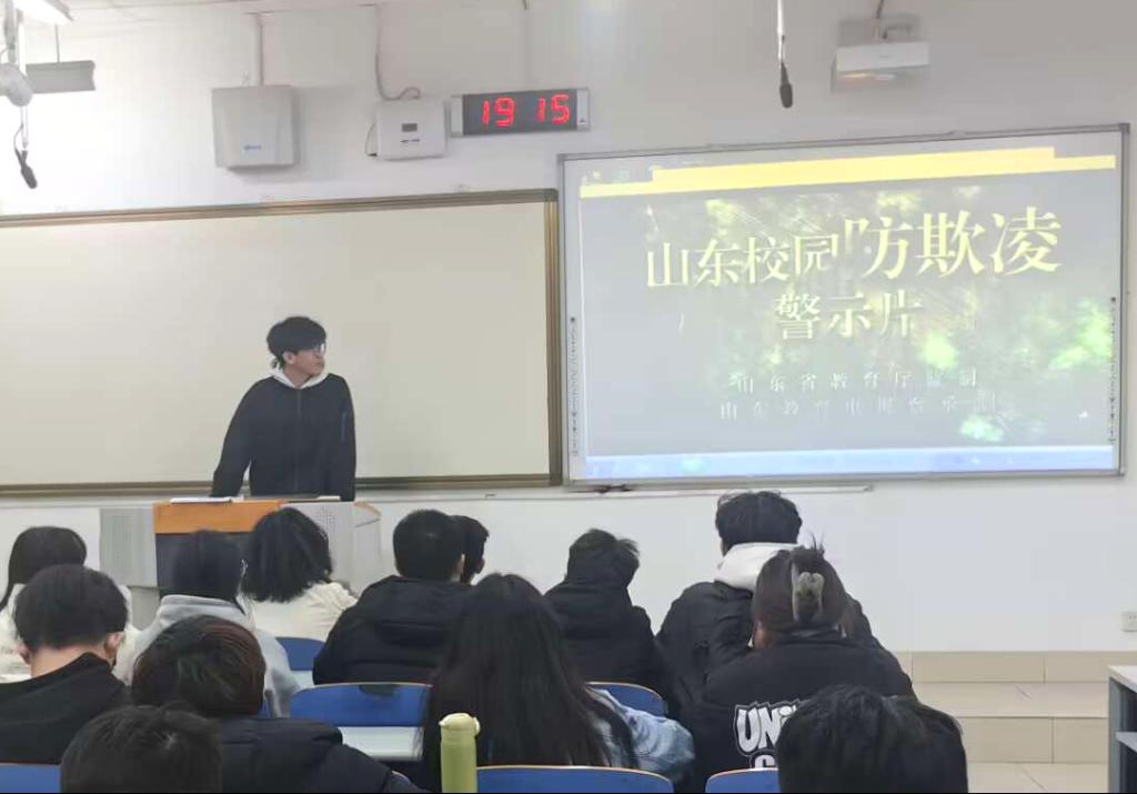 学院学生工作办公室(团委)各辅导员组织全体学生通过防欺凌教育警示片观影、“分析经典案列,学习心理知识”心理知识分享会、“感同身受,将心比心”校园防欺凌讨论会、宣读倡议书等多种形式参与,引导学生了解校园欺凌的危害,增强学生防范意识。同学们通过警示片直观的感受到了校园欺凌给青少年带来的恶劣影响,知识分享会从心理角度解释了校园欺凌现象发生的原因,帮助学生掌握心理调适方法,呼吁大家关心关爱身边同学,树立良好社会主义道德观,杜绝校园欺凌现象的发生。同学们纷纷表示“不做校园欺凌者,向校园欺凌说不!”