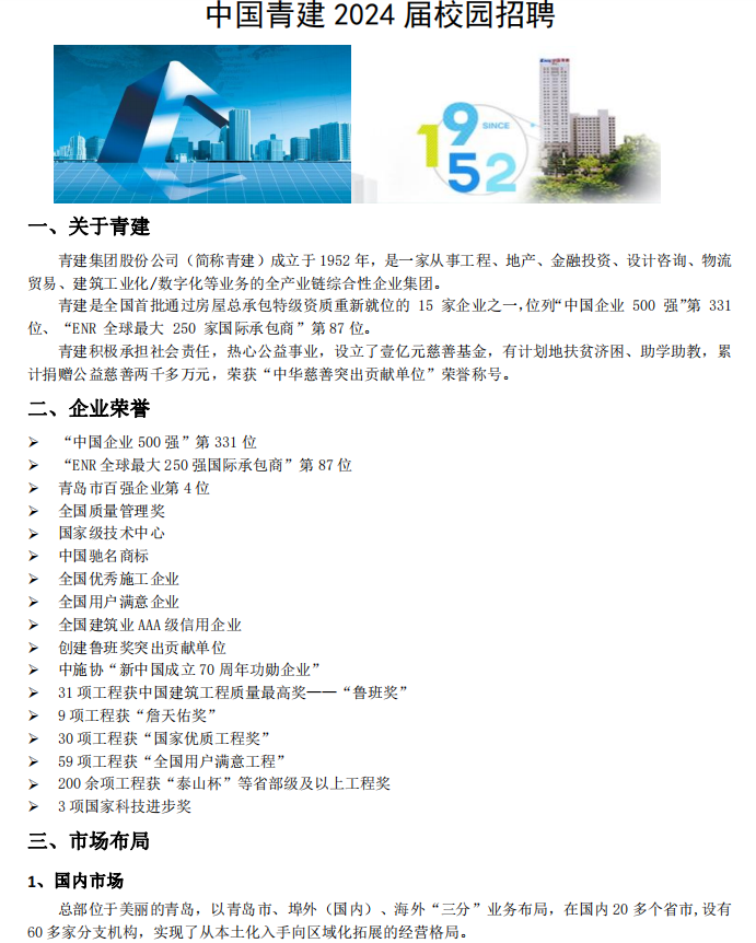 招聘信息(079)青建集团股份有限公司