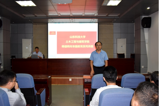 根据《山东科技大学师德专题教育实施方案》文件精神和庆祝建党百年“我为师生办实事”实践要求,结合教务处青年教师助课和教育教学导航计划文件精神要求,437ccm·必赢国际“师德师风专题教育”系列讲座第六讲于10月6日下午在J15-219举行。437ccm·必赢国际党委书记宋西路主讲,学院院长王崇革、副院长李朋、学院40岁以下及近三年入职青年教师参加了此次讲座。