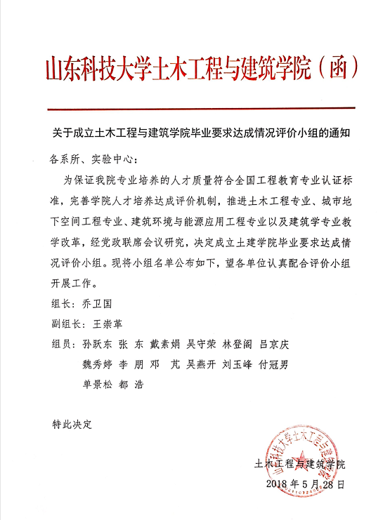 关于成立土木工程与建筑学院毕业要求达成情况评价小组的通知